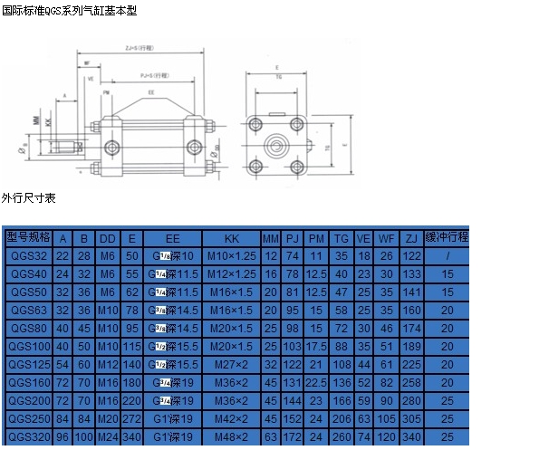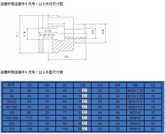 国际标准QGS系列气缸基本型、活塞杆用连接件(代号:LZ)外行尺寸图