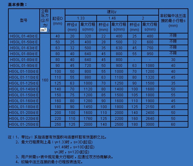 液压缸型号及性能参数